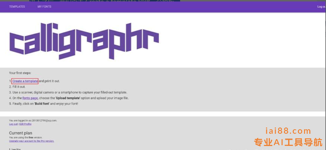 第三步:注册成功登录后,进入之后,我们点击 Create a template 创建一个模板。