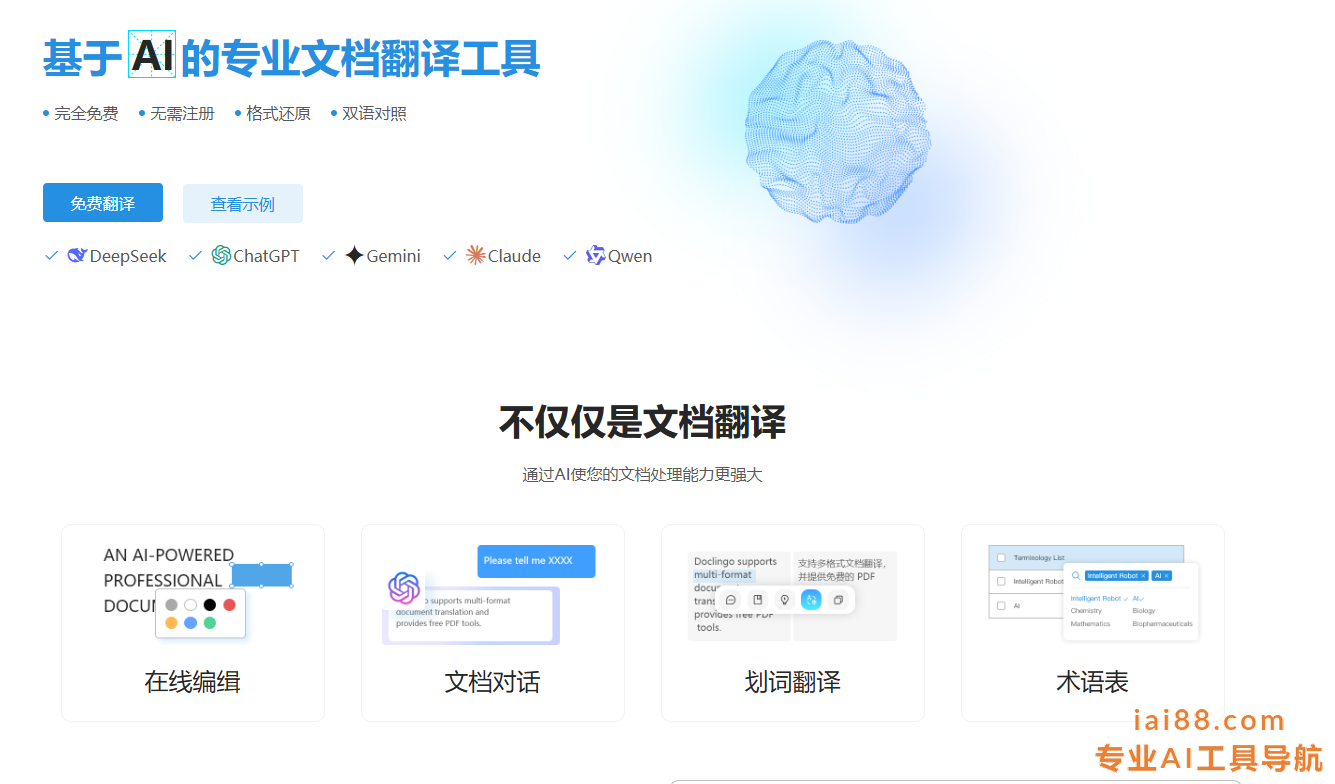 Doclingo是一款智能的AI文档翻译工具,支持PDF、Word、Excel等多种格式,提供高效、精准的翻译,同时保留原始排版,并支持后期编辑和文档总结会话等功能。