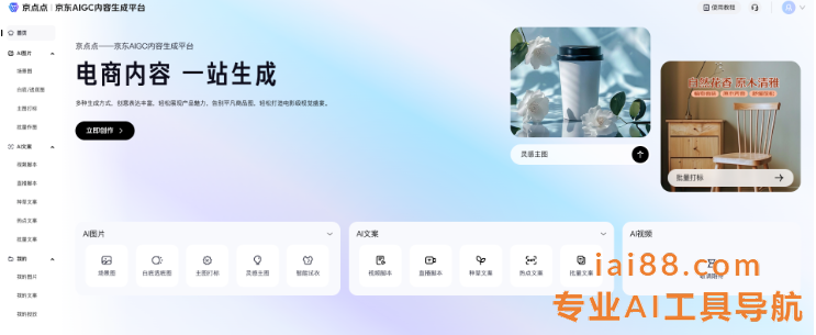 京点点是京东推出的一个AIGC内容创作平台,旨在帮助商家提升内容生成效率和效果。 京点点基于京东自研AI大模型技术,为商家提供了AI智能抠图、AI商品图、营销贴片、AI卖点图。