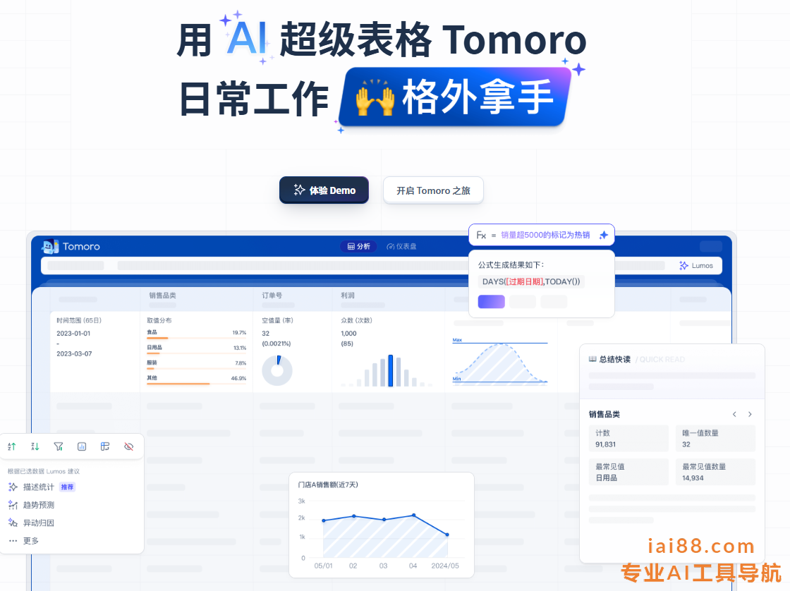 Tomoro 是灯塔分析平台推出的AI 原生大数据分析工具,旨在通过用户熟悉的电子表格界面,打破传统数据分析工具的技术壁垒,让任何人都能轻松探索百亿级数据背后的价值。
