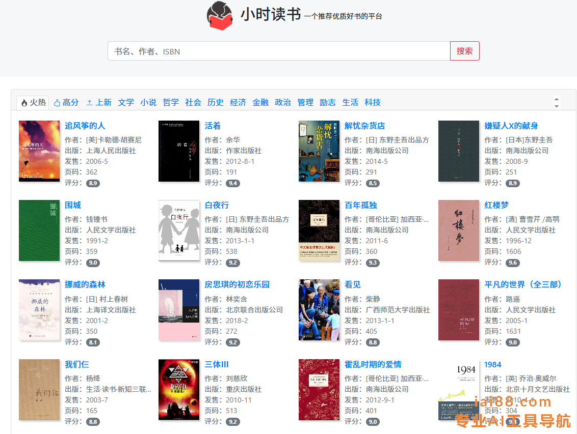 小时读书是一个推荐优质好书的平台,提供查询和搜索功能。搜索找到后可直接进行下载。