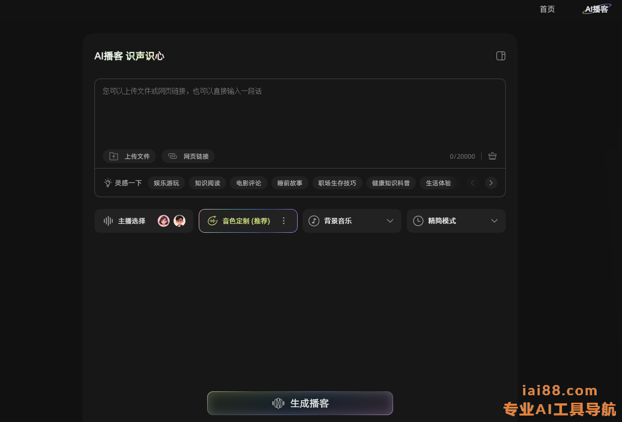 音秘是百度推出的AI播客创作工具,让用户轻松创作个性化播客内容。免费的播客创作工具,多格式文本转超拟人对话音频,自动创作脚本,支持音色克隆和背景音乐添加。