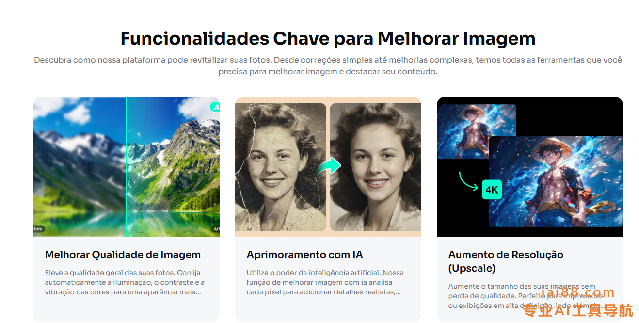 利用我们强大的AI技术,将普通照片变成惊艳的图像。我们的图像增强系统可在几秒钟内提升清晰度、还原色彩并修正瑕疵,让每张照片都完美无瑕,即刻可用。