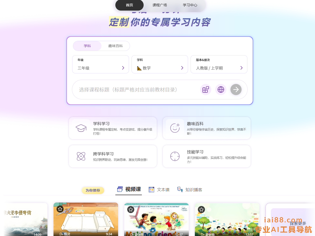 课游记是AI时代的原生学习产品,是一款面向中小学师生的 AI 个性化学习平台,由九间科技推出。课游记AI通过强大的教育内容生成引擎和智能体,为全球家庭提供高质量教育内容。通过强大的教育内容生成引擎和智能体为全球家庭提供高质量教育内容。在课游记世界,每个学生都可以获得高效和个性化的学习新体验,让孩子真正爱上学习。