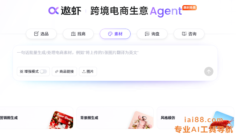 遨虾是阿里巴巴旗下1688平台于2025年推出的跨境AI智能体,旨在帮助海外小型零售商直连中国供应链,通过选品匹配、工厂筛选等功能将选品周期从数天缩短至分钟级。专为解决跨境经营中的效率和成本问题而设计。遨虾将选品、找商、询盘、素材制作以及政策咨询等关键环节实现自动化和智能化处理。