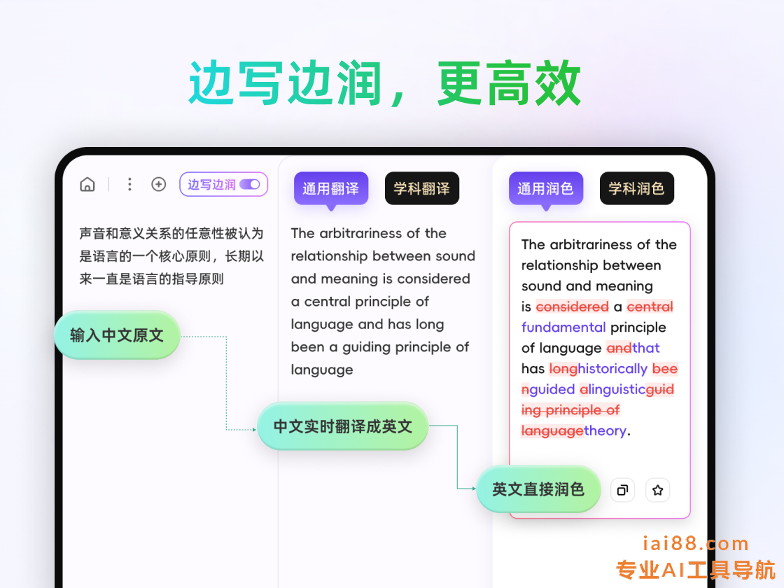 支持边写边译、边润的写作场景,让写作更加便捷顺畅