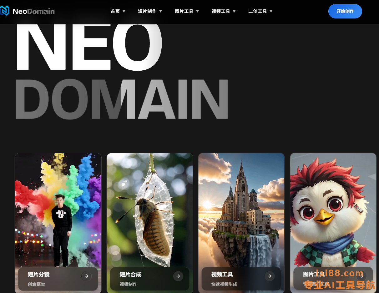 智灵新境-AI创意工坊通过AI技术将想象转化为故事板和短片,让每个故事都找到自己的观众。提供从创意构思到成片的一站式服务。用户只需输入简单的创意描述,NeoDomain 即可自动完成编剧、分镜设计等。