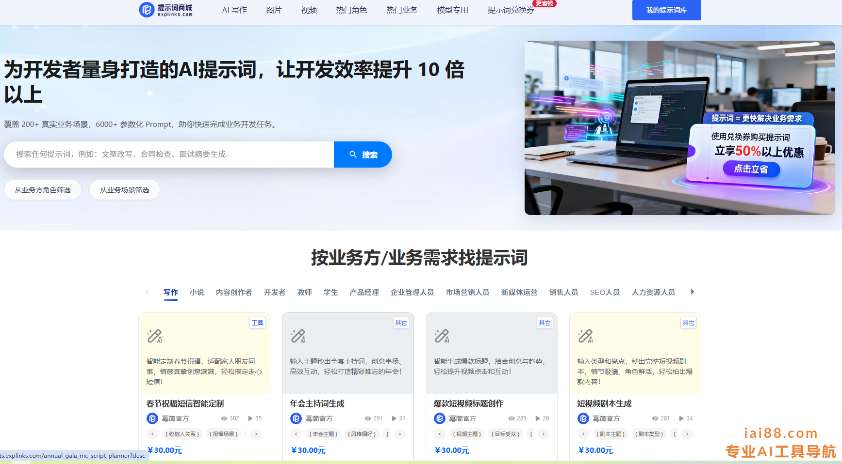 提供3000+优质提示词模板,支持变量自定义,一键生成高质量Prompt。免费试用,满意再购买!还可将提示词发布为API或AI Agent,提升工作效率。