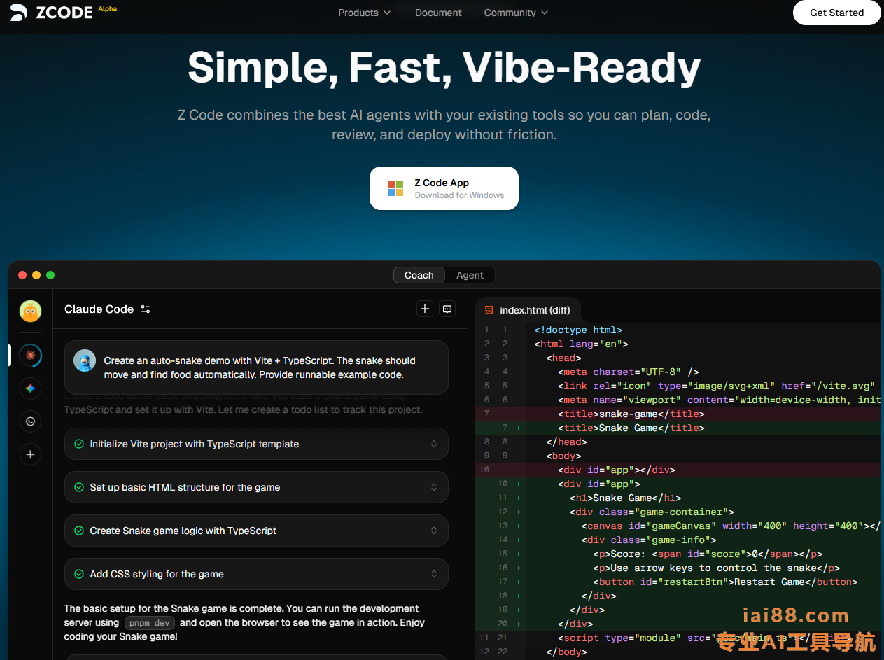 Z Code是智谱公司于2025年12月26日正式发布的轻量级AI代码编辑器,目前处于Alpha测试阶段,支持macOS和Windows系统。