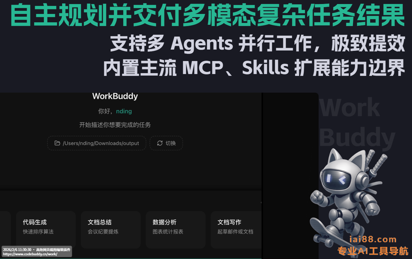WorkBuddy定位为面向非技术背景职场人群的桌面办公应用:用户通过自然语言,一句话描述任务给 WorkBuddy,它就可以直接在本地电脑自主规划并执行多模态复杂任务,包括读取电脑上的经授权文件夹,自动批量处理文件、生成文档/表格/PPT、多模态内容创作、数据深度分析、行业调研、多任务 Agent 并行处理等。目前WorkBuddy 并内置了多种模型和主流 MCP Server 和 Skills 技能包等高阶功能。