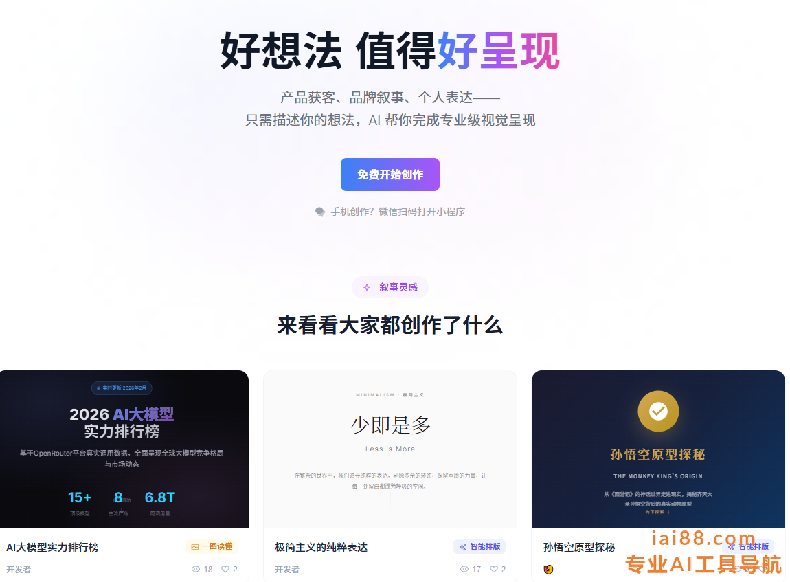 - 跨平台:Web端 + 微信小程序,随时随地创作。