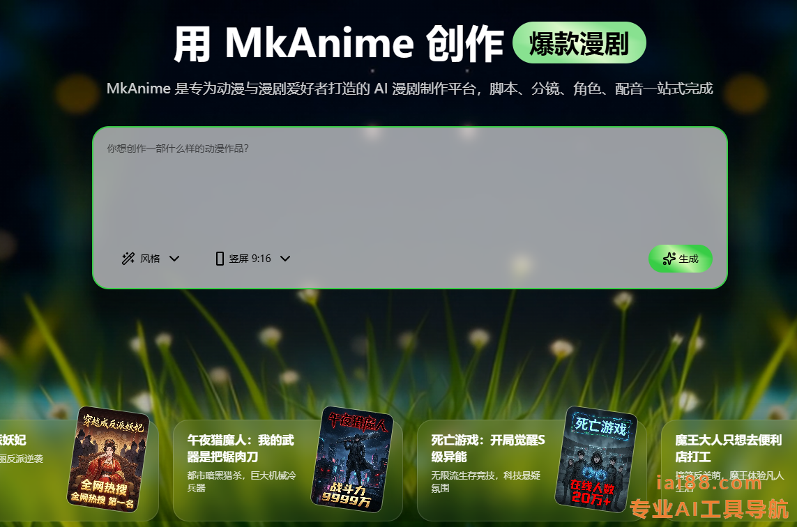 - 不要一上来就画角色。MkAnime 会先从你的故事想法出发。你只需要描述题材、世界观、冲突与基调,AI 会生成结构化大纲,包含分集节拍和叙事弧线。