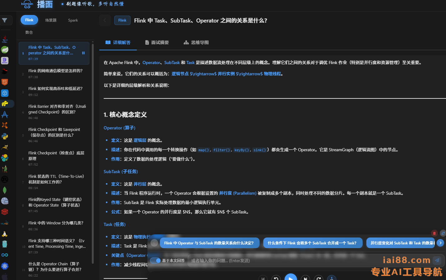 播面提供音频形式的面试题库,涵盖Java、Python、JavaScript、算法、数据库等技术领域。让你可以像听歌一样刷面试题,随时随地提升面试技能。