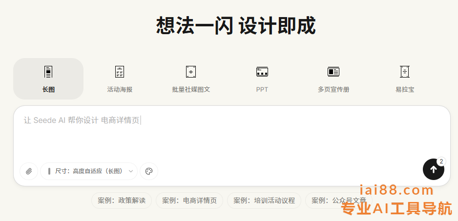 Seede AI 是一款 AI 驱动的图文海报设计平台,专为运营人员和内容创作者设计,旨在通过强大的人工智能技术,帮助用户在短时间内完成高质量的设计作品。只需提供文字内容,无需写 Prompt 或懂设计,AI 可自动生成专业排版的设计稿,且输出的是可编辑源文件——每行文字、每张图片都是独立图层,支持直接修改。