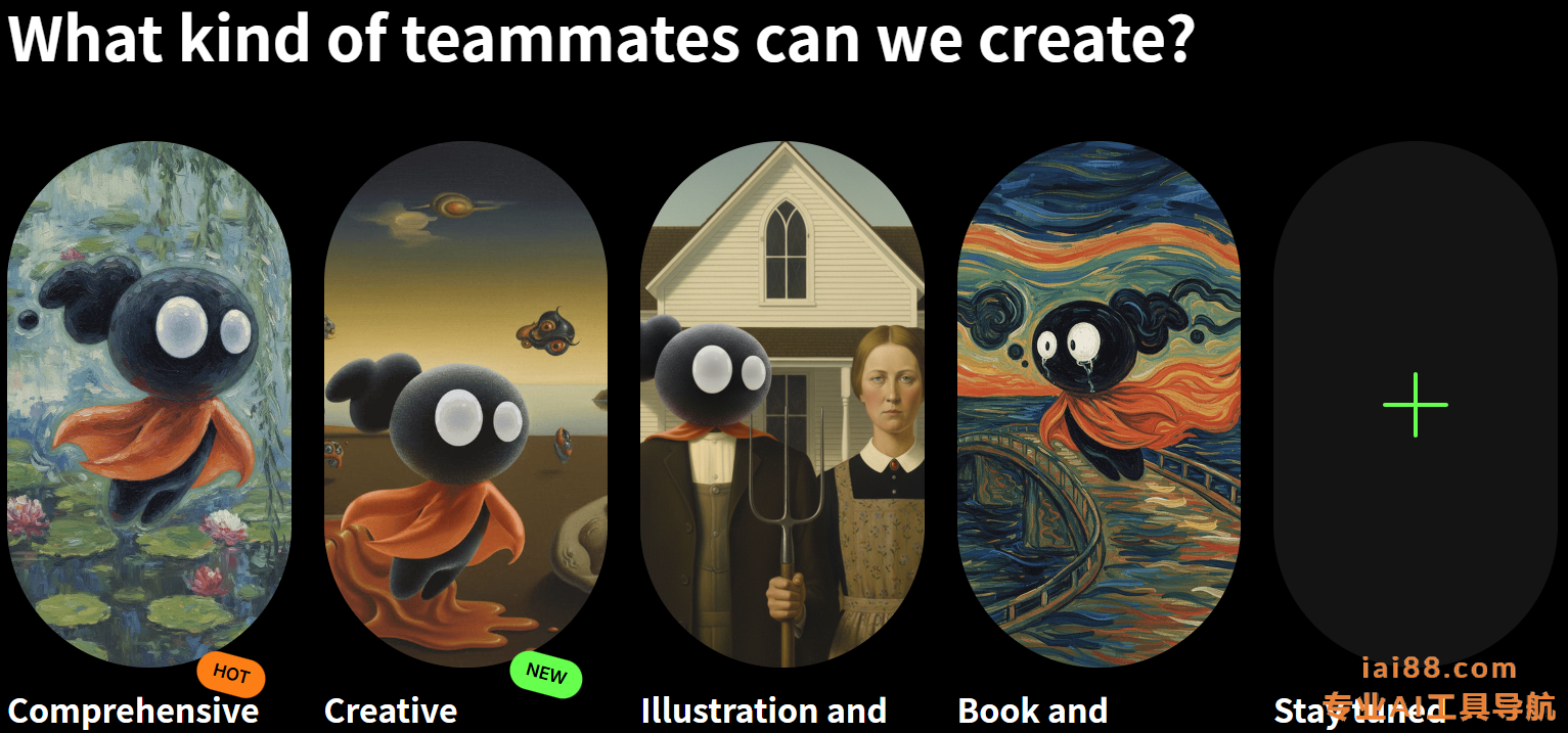 Miora AI 支持品牌、插画、海报、角色、产品、建筑、画册等八大领域设计需求。