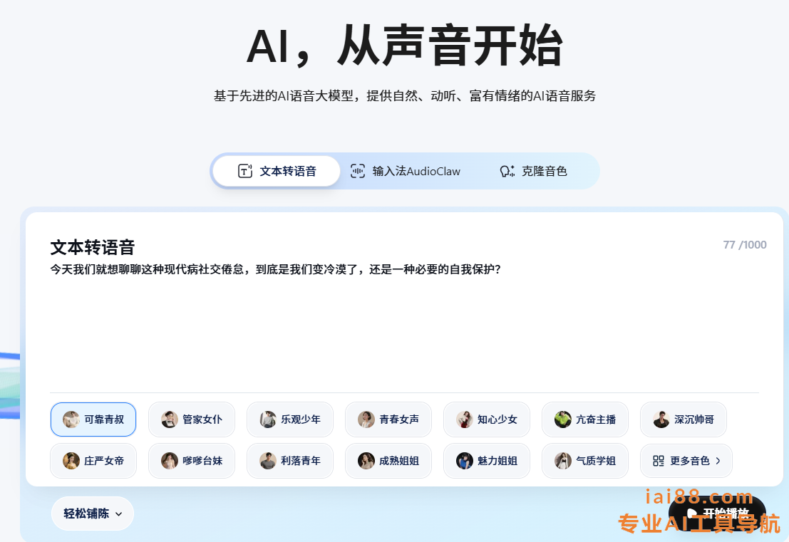 SenseAudio,具有真人感的AI语音,提供动听的TTS音色,支持AI配音,AI语音定制,音色克隆,文生音色,AI语音生成,AI语音克隆,声音克隆,播客,有声书。