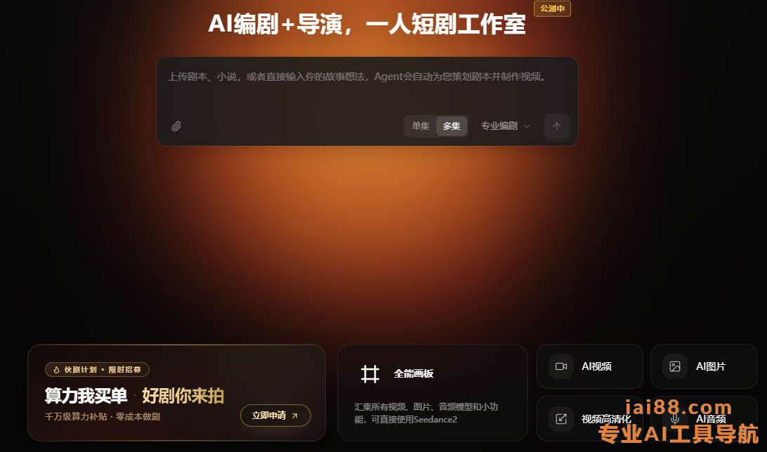剧火AI是首批接入Seedance 2.0的AI短剧制作平台,支持AI漫剧和AI仿真人剧创作。从一句想法到短剧成片,AI编剧+AI导演帮你完成剧本策划、分镜设计、角色场景搭建与视频制作,一个人也能高效开工。
