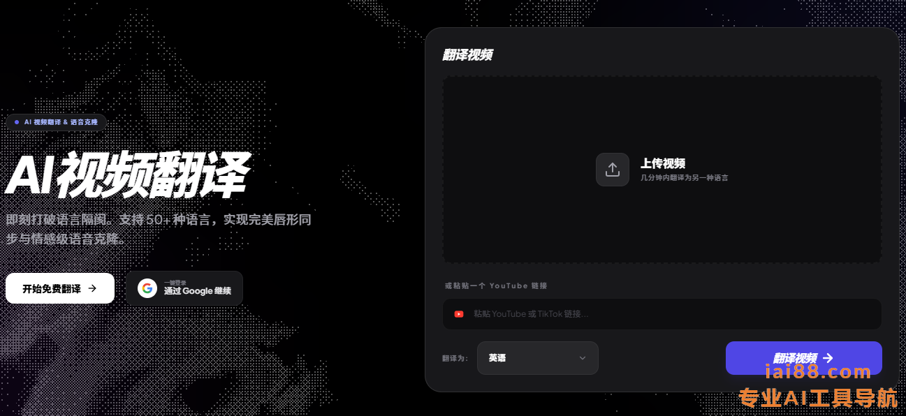 - 支持本地上传主流视频格式,或粘贴YouTube链接在线翻译